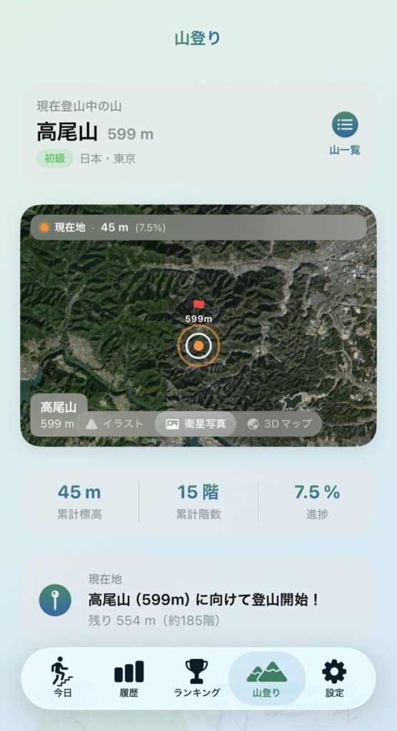 実際に目的地まで向かうというわけではなく、ヘルスケアのデータのウォーキング+ランニングの距離を取得することで、目的地まで移動した距離に仮想の現在地点を表示させます。